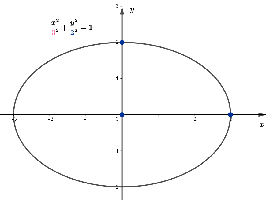 b) Elipse com centro na origem, b=2 no eixo x e a=3 no eixo y.