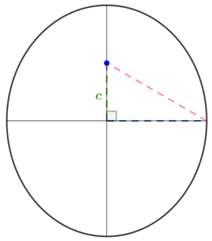 A distância do centro ao foco é c.