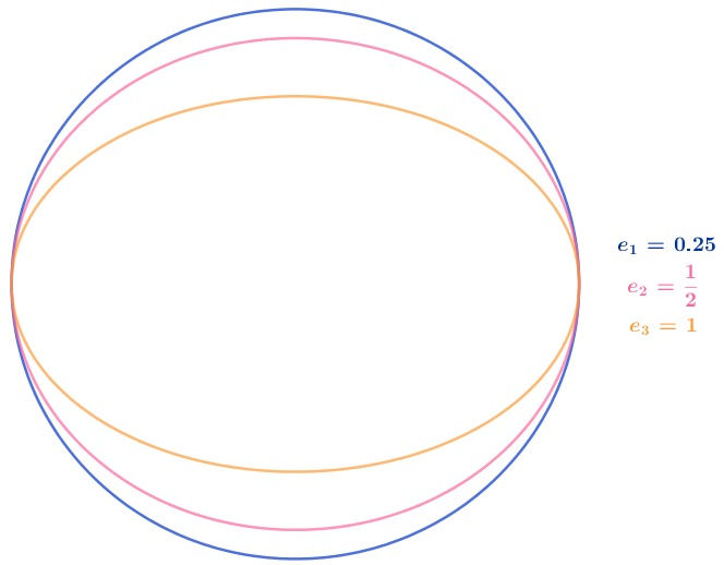 A excentricidade indica se a elipse é mais ou menos ''achatada''. Quanto maior a excentricidade, mais achatada ela é.